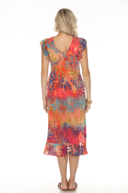 Cap Sleeves Cheetah Print Multicoloured Dress