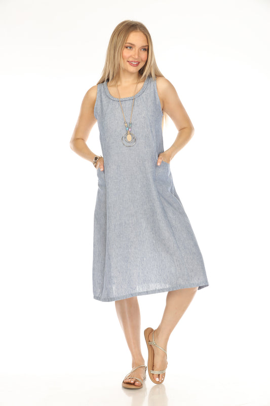 Denim Blue Sleeveless Bottom Slit Jumpsuit