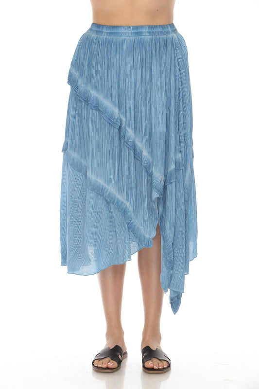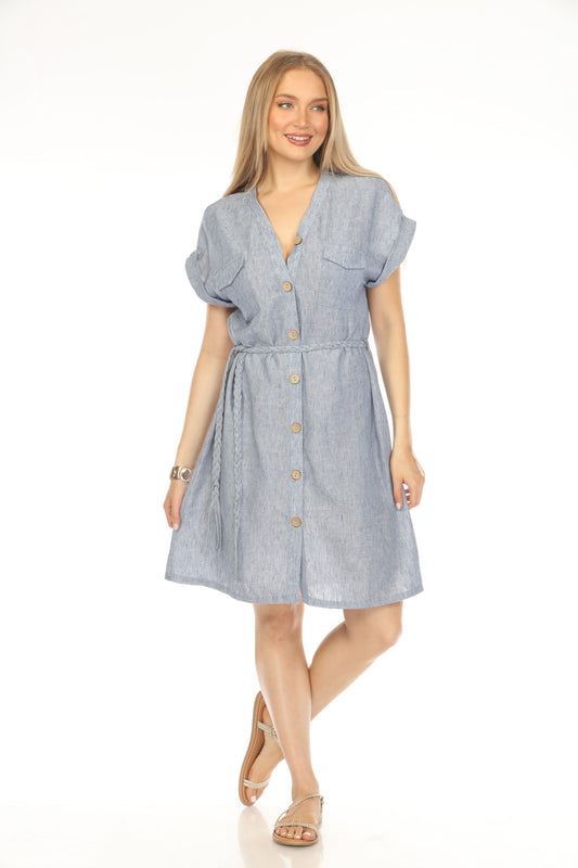 Denim Blue V Neck Plain Top With Bell Sleeves