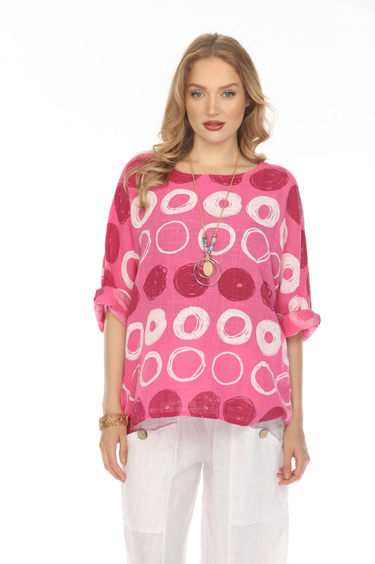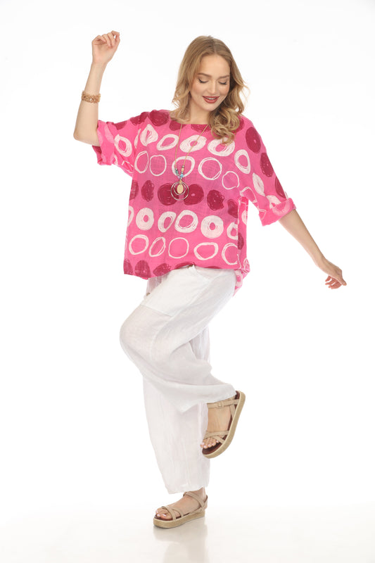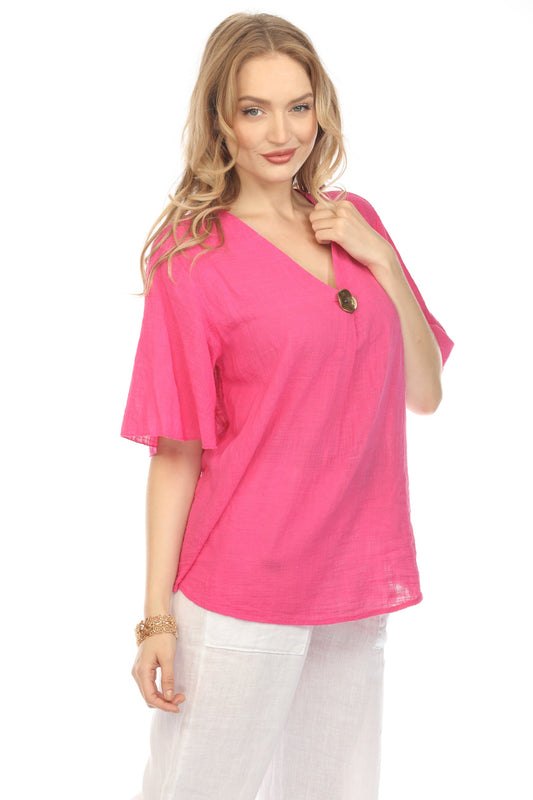 Fuchsia V Neck Plain Top With Bell Sleeves