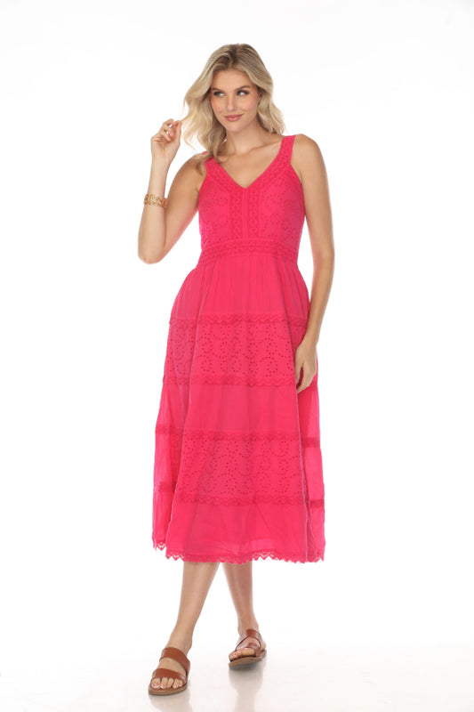 Fuchsia 100% Cotton Maxi Dress With Pockets