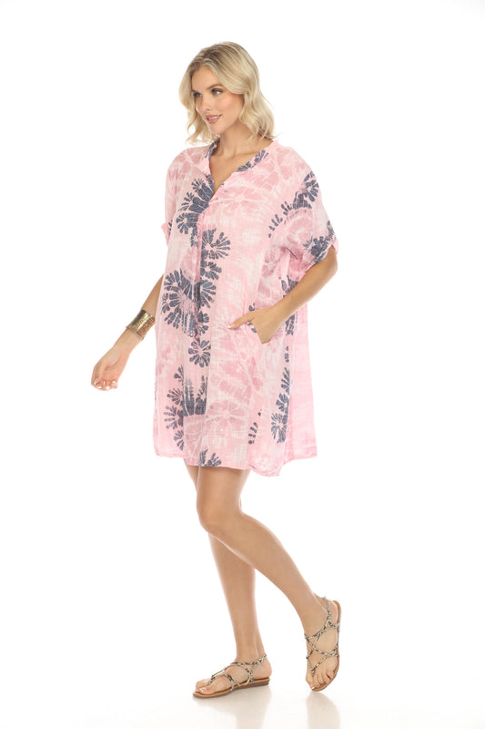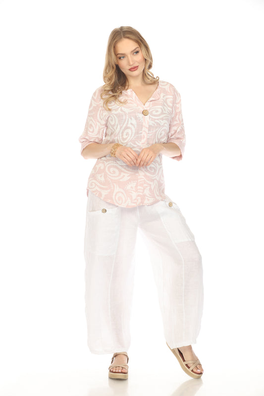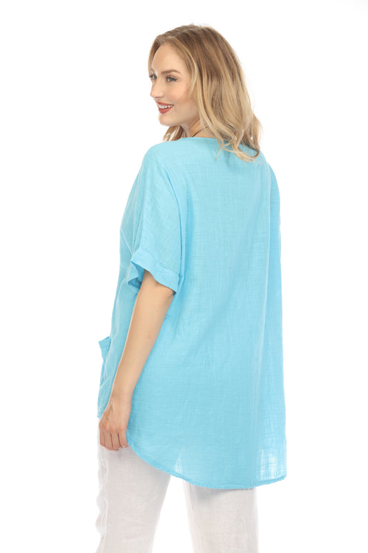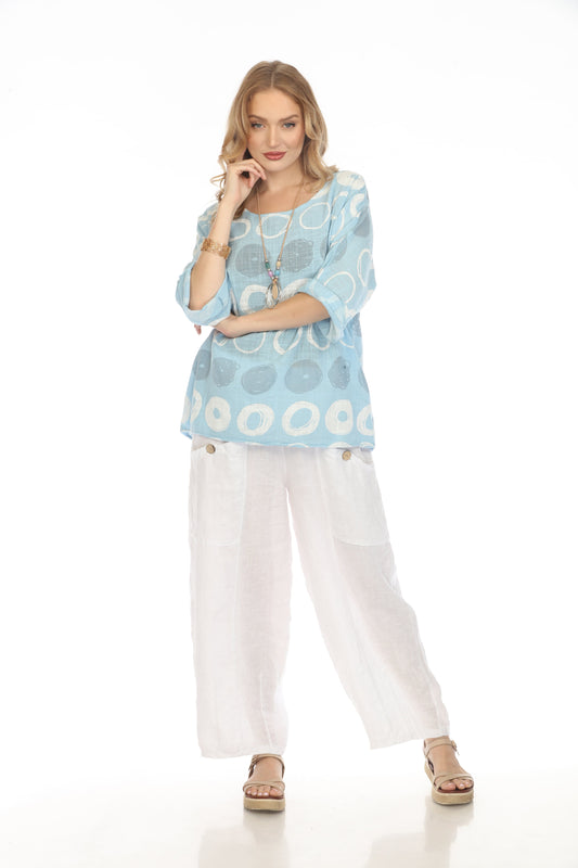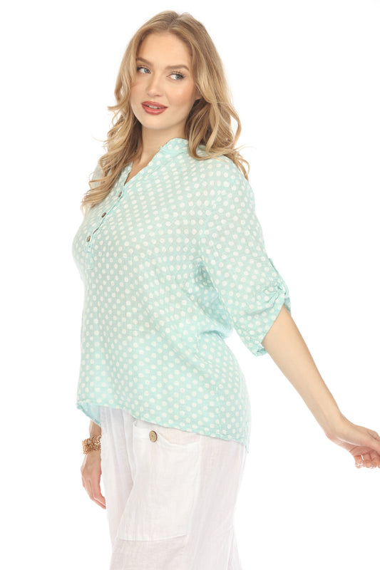 Light Blue Polka Dot Quarter Sleeves Button Top