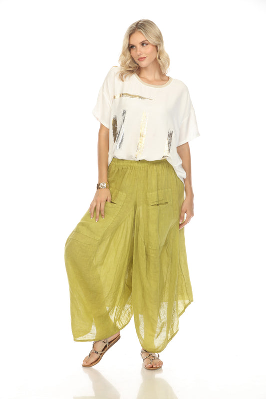 Moss Green Gold Detail Strachable Pant with Drawstring
