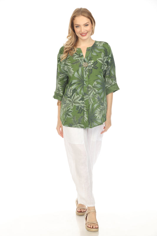 Moss Green Cheetah Detail stretchable pant with Pockets