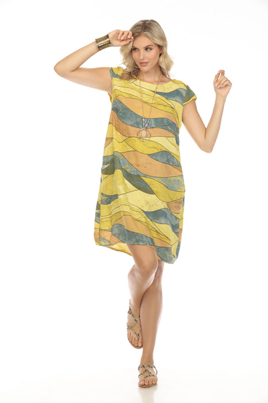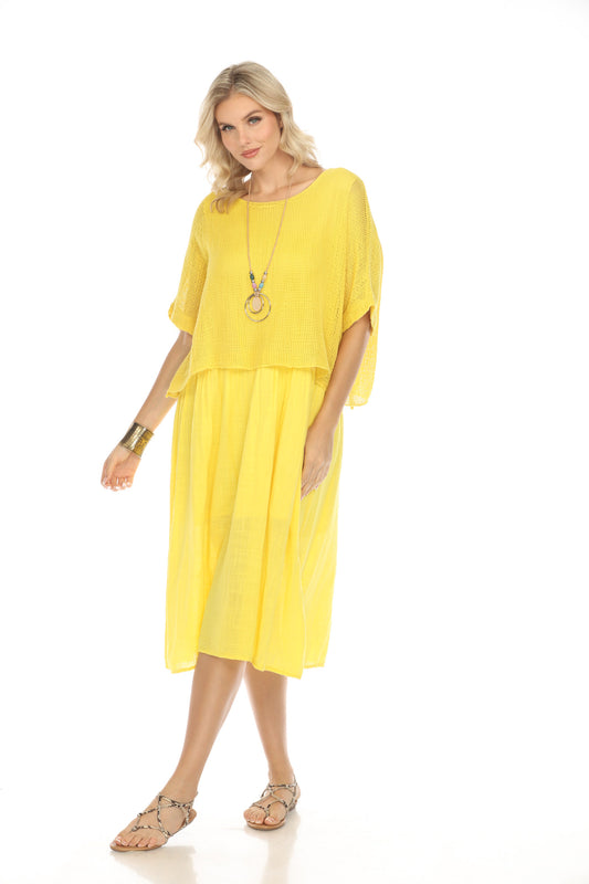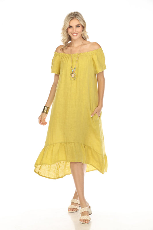 Mustard Dress with Elastic Neck and Ruffles Hem