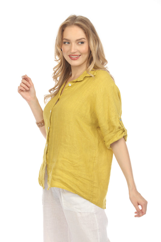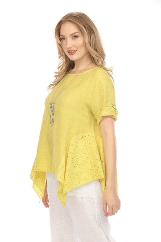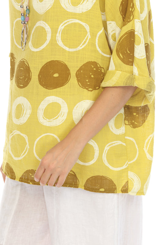 Mustard Half Sleeves Top with Asymmetrical Hem