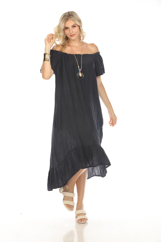 Navy Dress with Elastic Neck and Ruffles Hem
