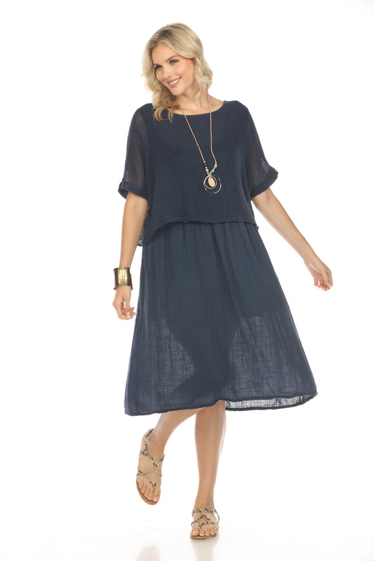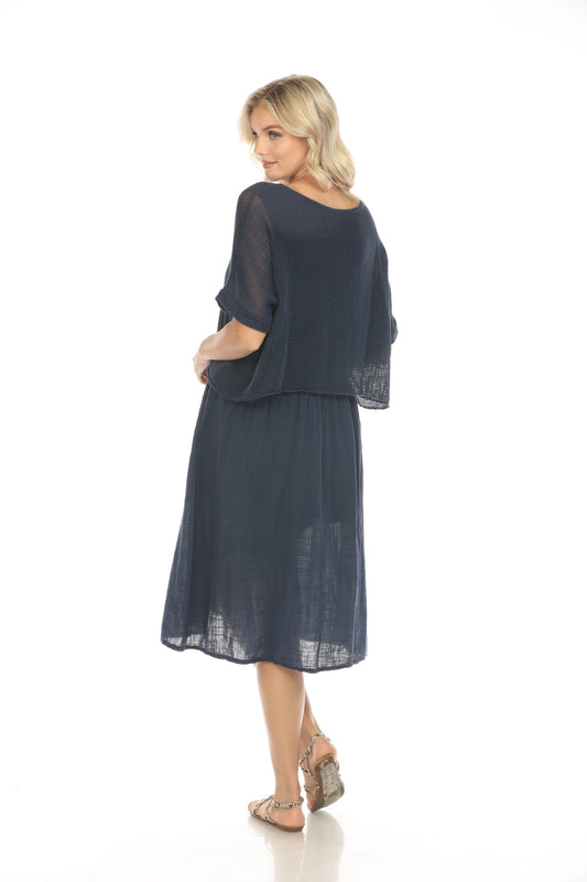 Navy Cape style Dress with Netting Detail