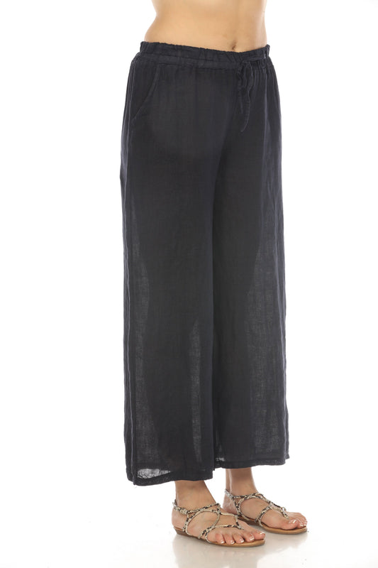 Navy Drawstring Elastic Waist Wide Leg Pant