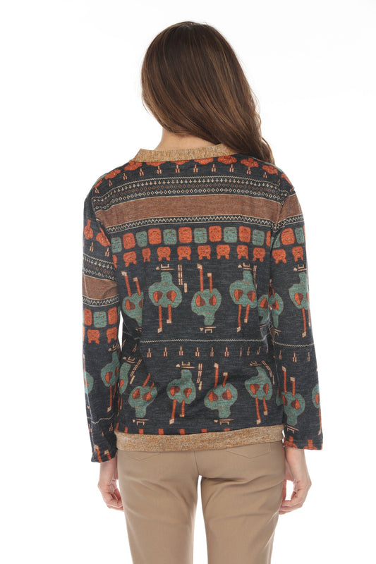 Navy Figure Print Button Up Sweater/Cardigan