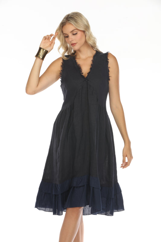 Navy Frayed Style Ruffle Hem Dress