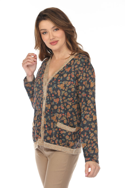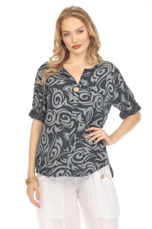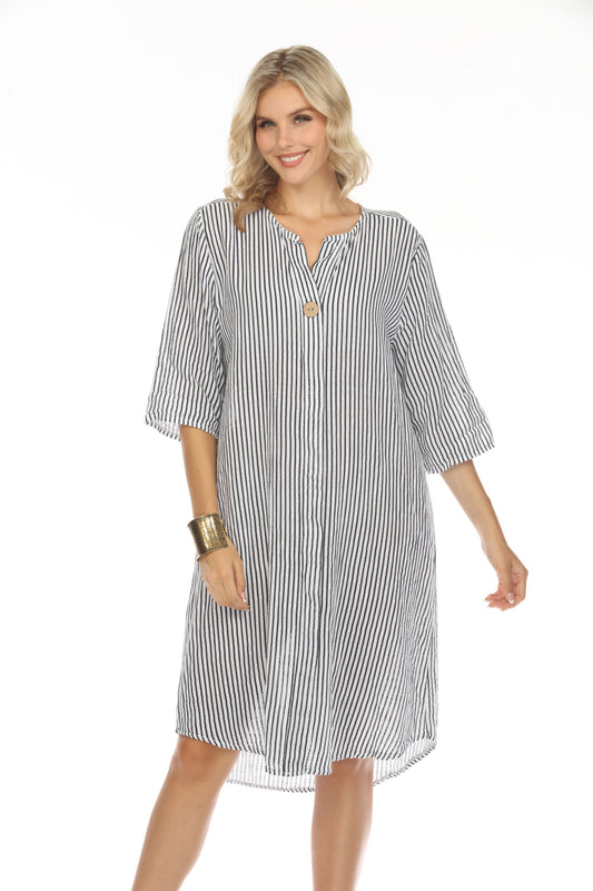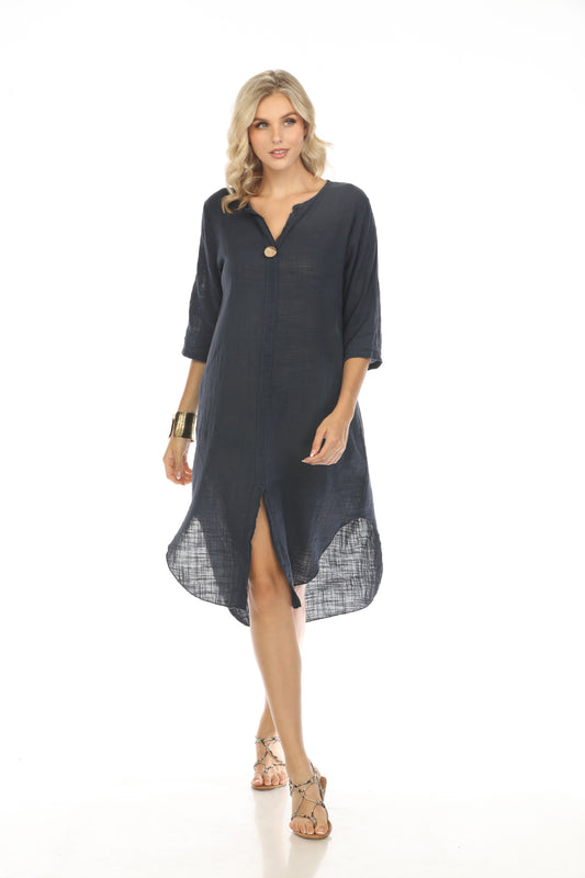 Navy Painted Print Button Up Sleeves Pockets Dress