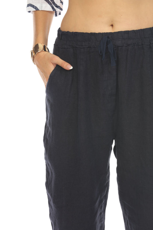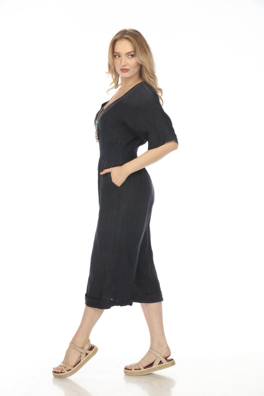 Navy Half Sleeves Elastic Waist Jumpsuit