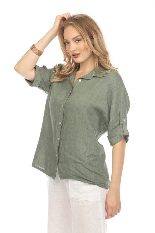 Olive Bamboo Belted Skirt with Buttons & Pockets