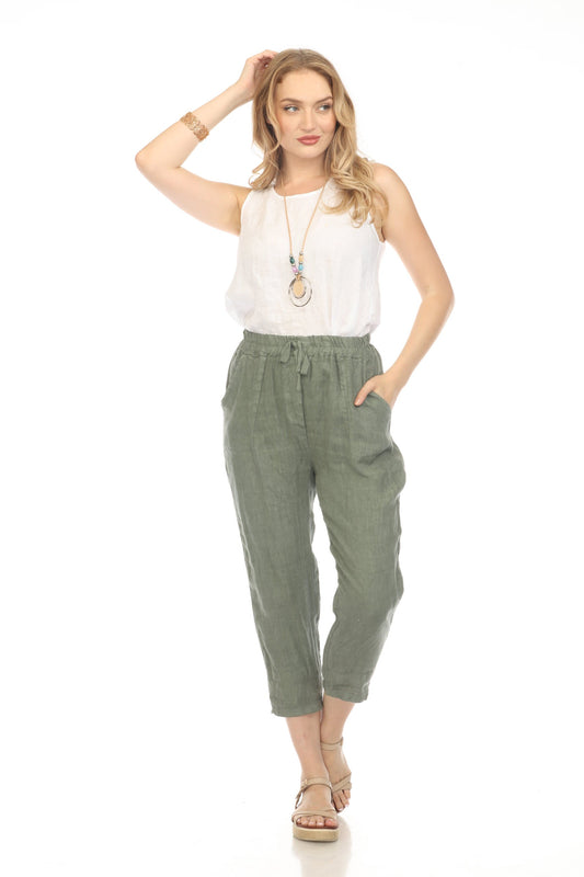 Olive Drawstring Elastic Waist Wide Leg Pant