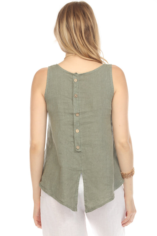 Olive Sleeveless top button detailed back