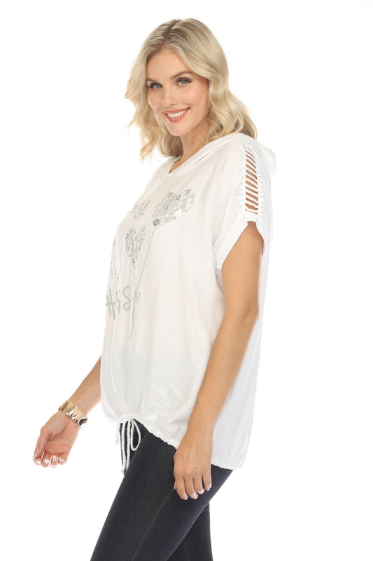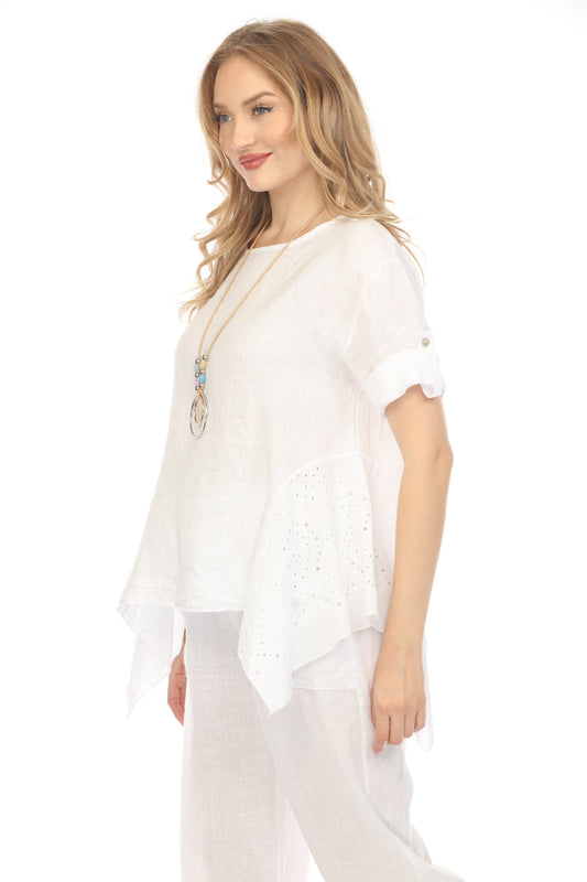 White High-Low Cap Sleeves Top with Bottom Ruffles