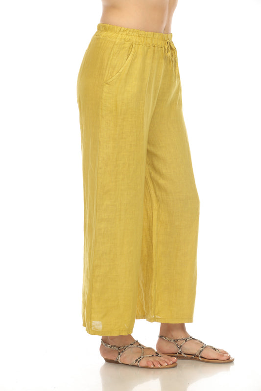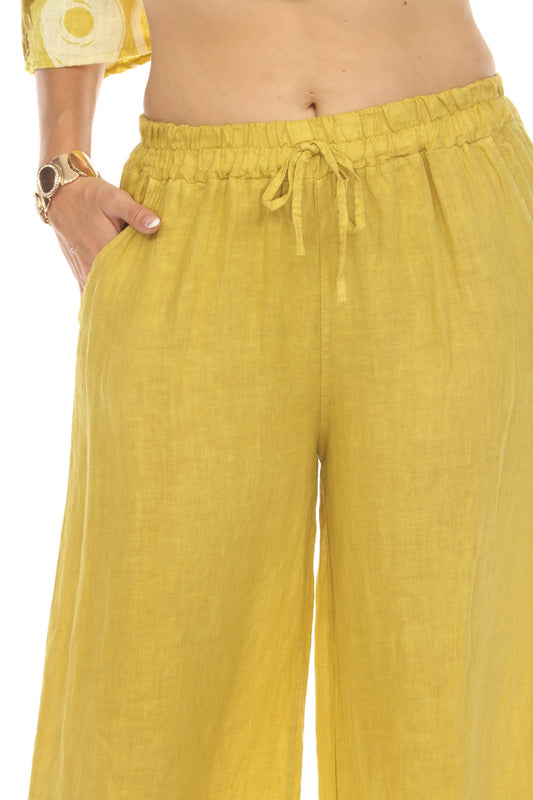 Yellow Drawstring Elastic Waist Wide Leg Pant