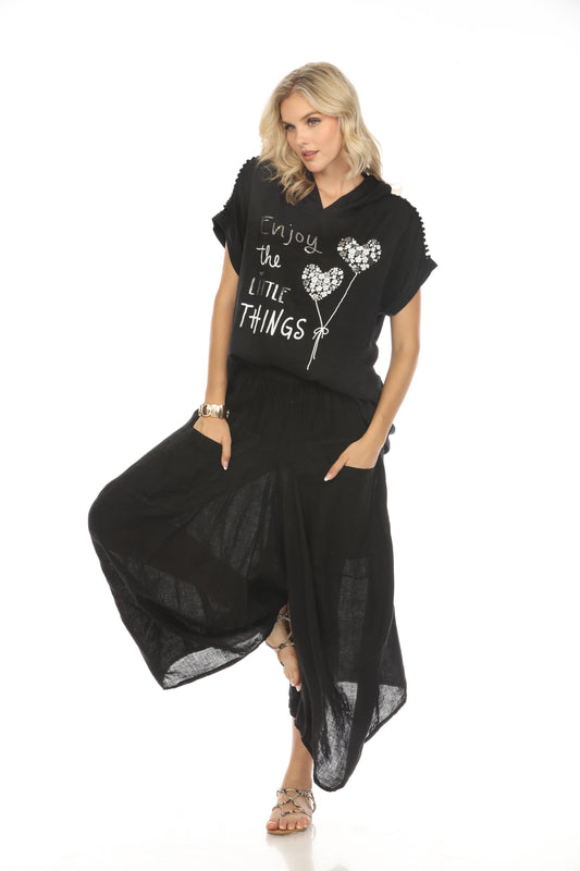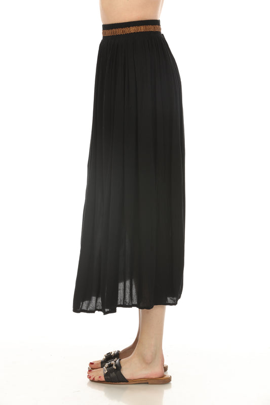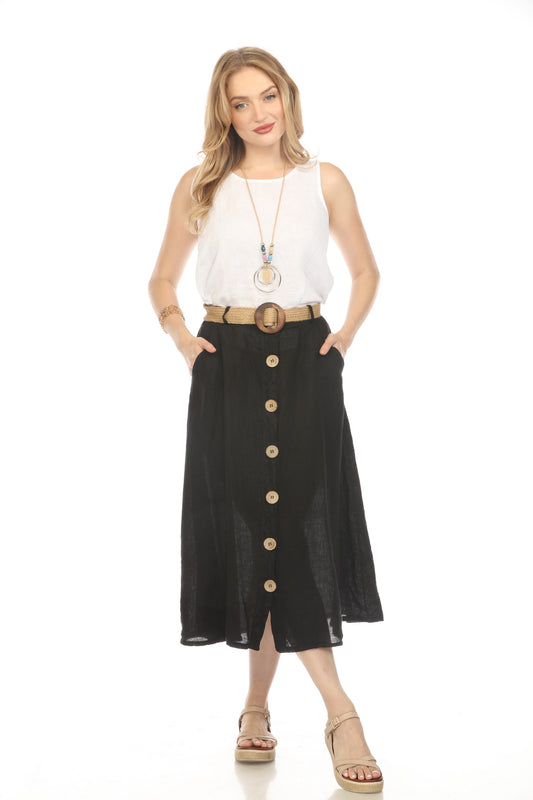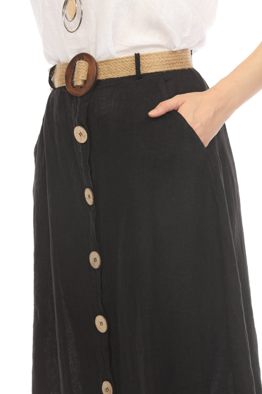 Black Bamboo Belted Skirt with Buttons & Pockets