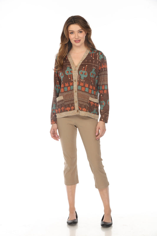 Brown Figure Print Button Up Sweater/Cardigan