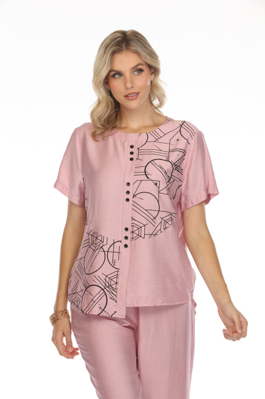 Blush Pink Abstract Print Button Detailed Top