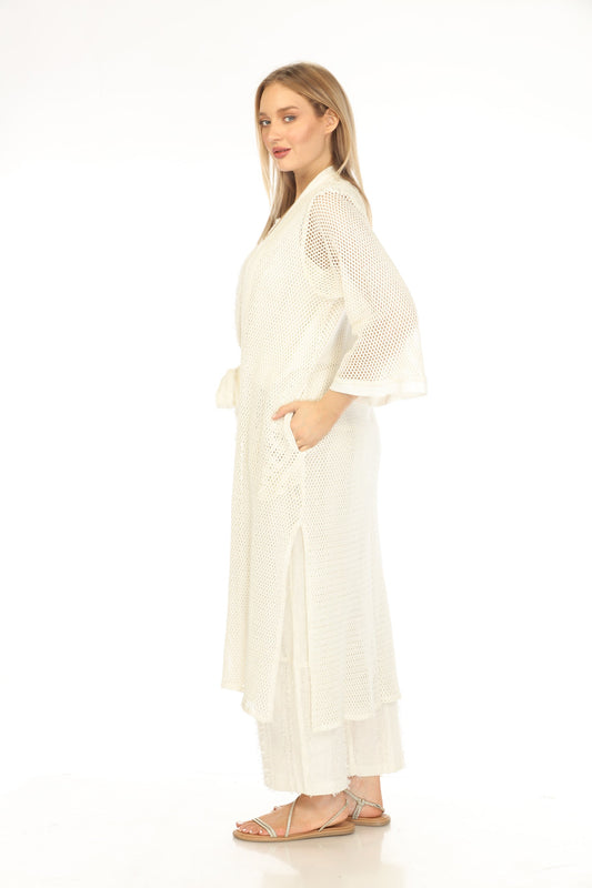 Off White Crochet Cardigan With Pockets