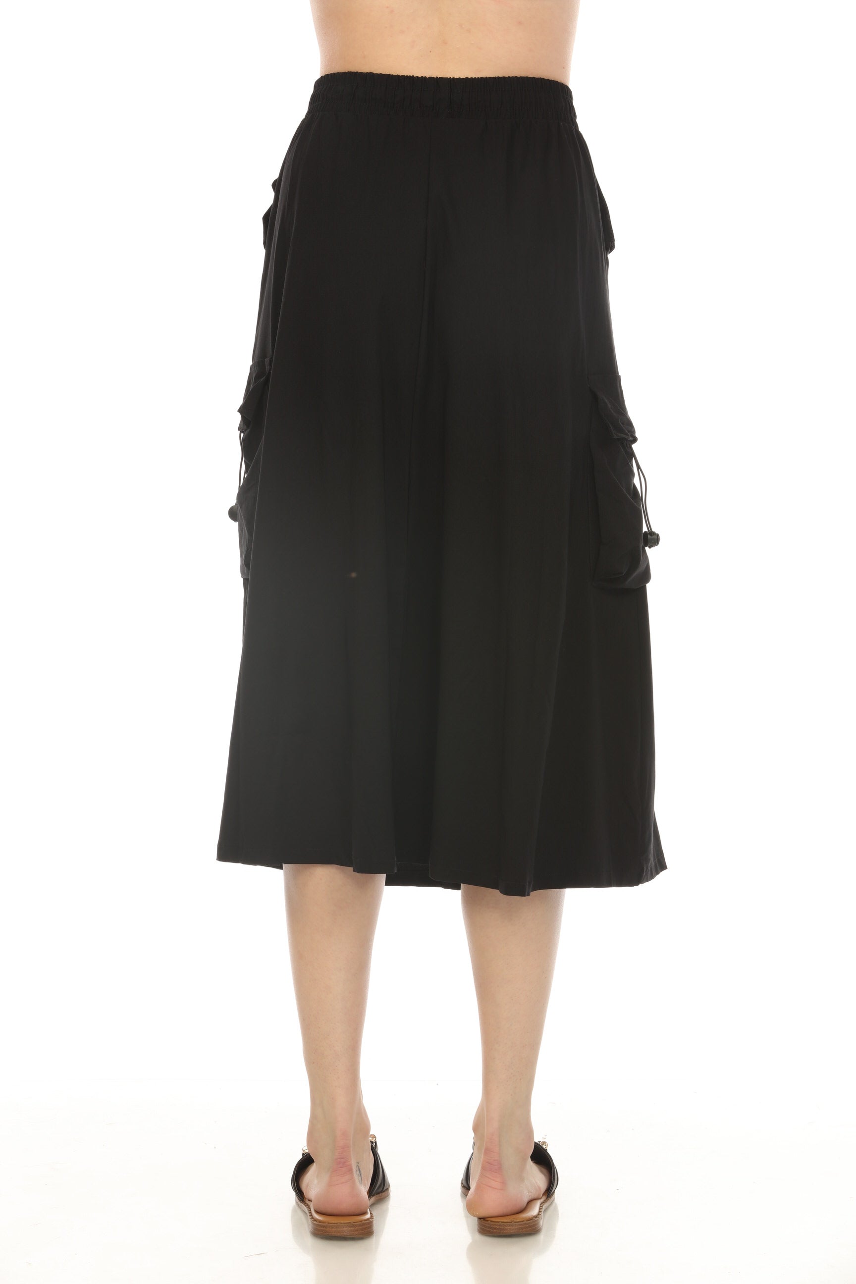Black Cargo Elastic Waist Pockets Skirt