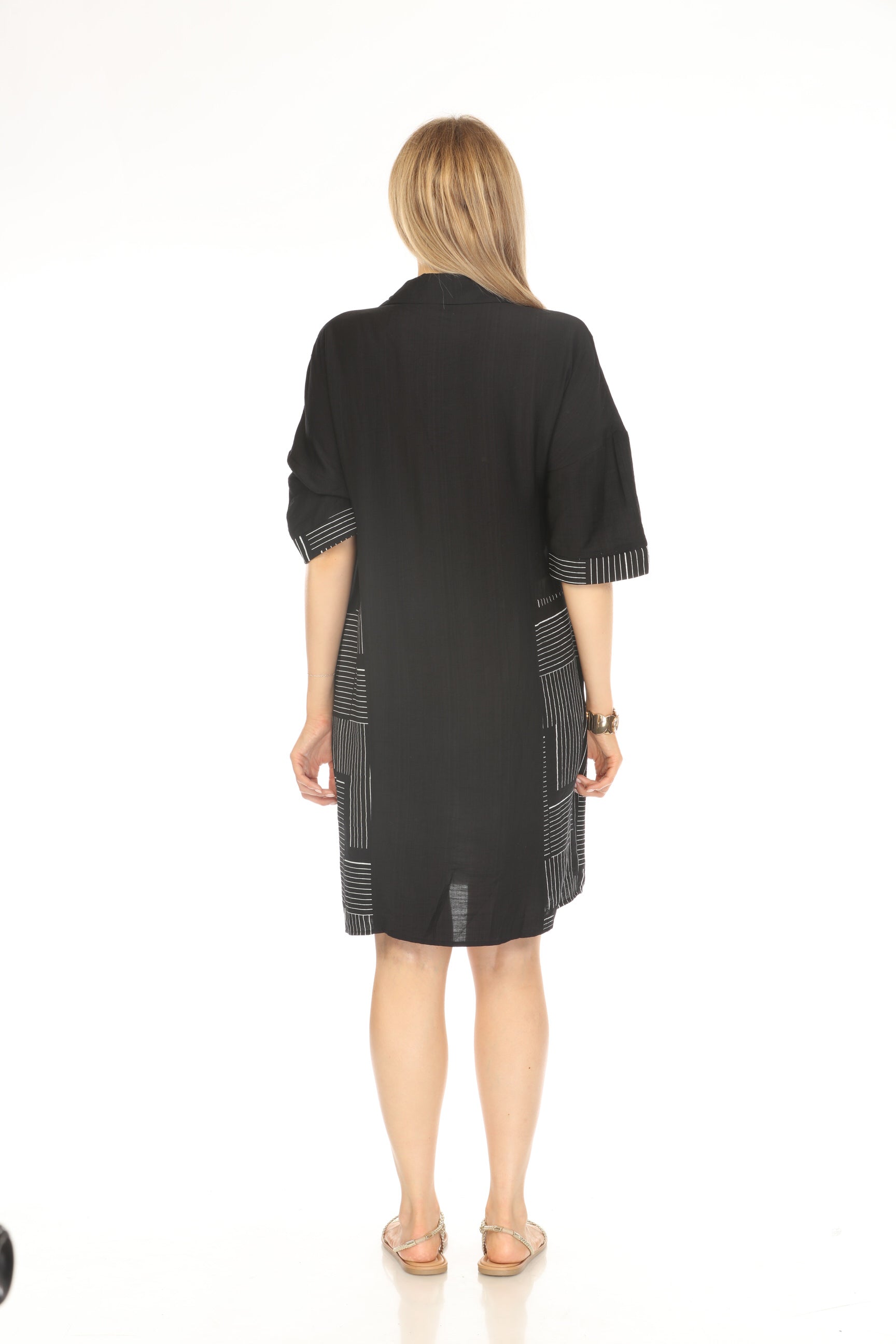 Black Side Strips Pockets Dress