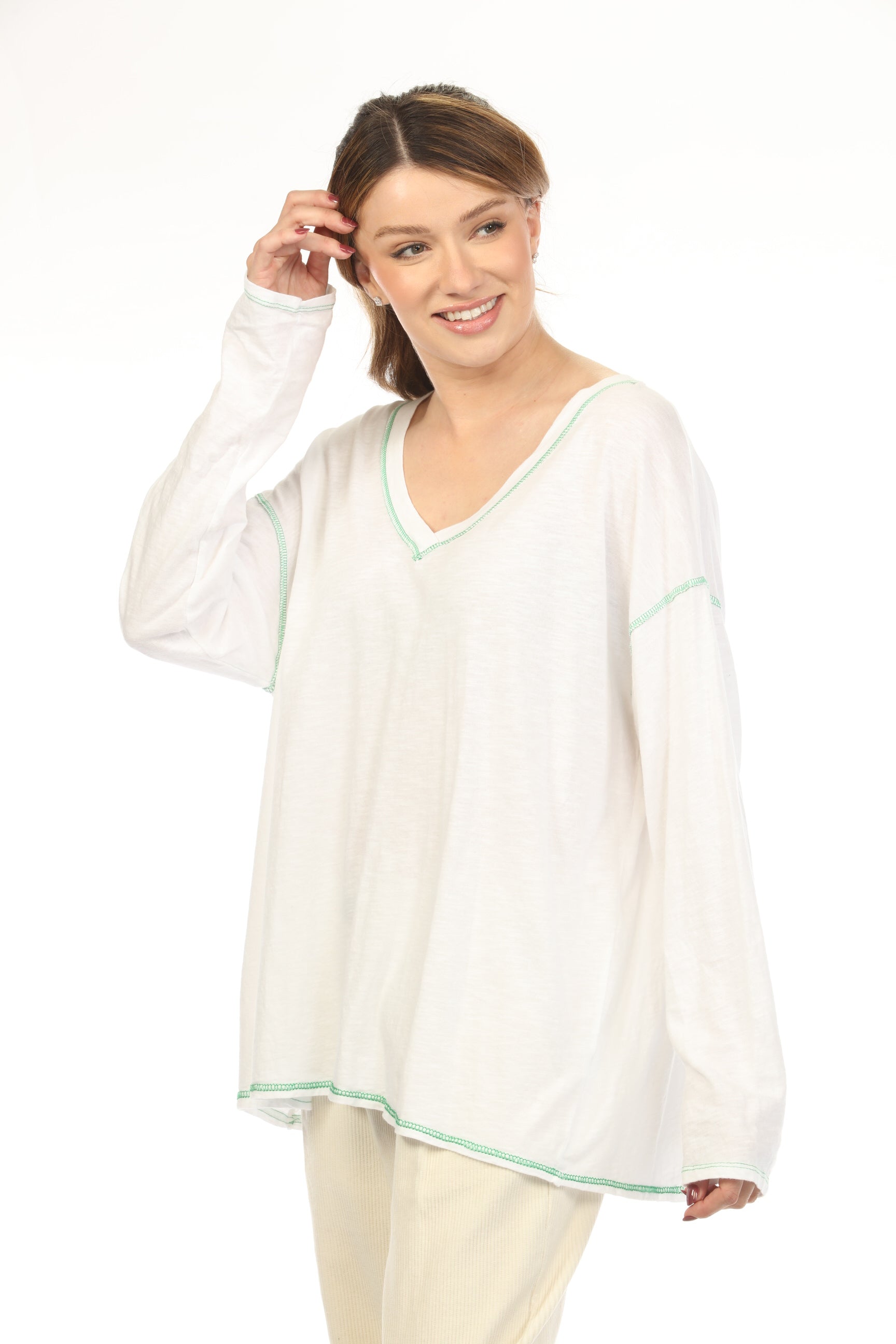 Colwhite V neck 100% cotton Top JY3636