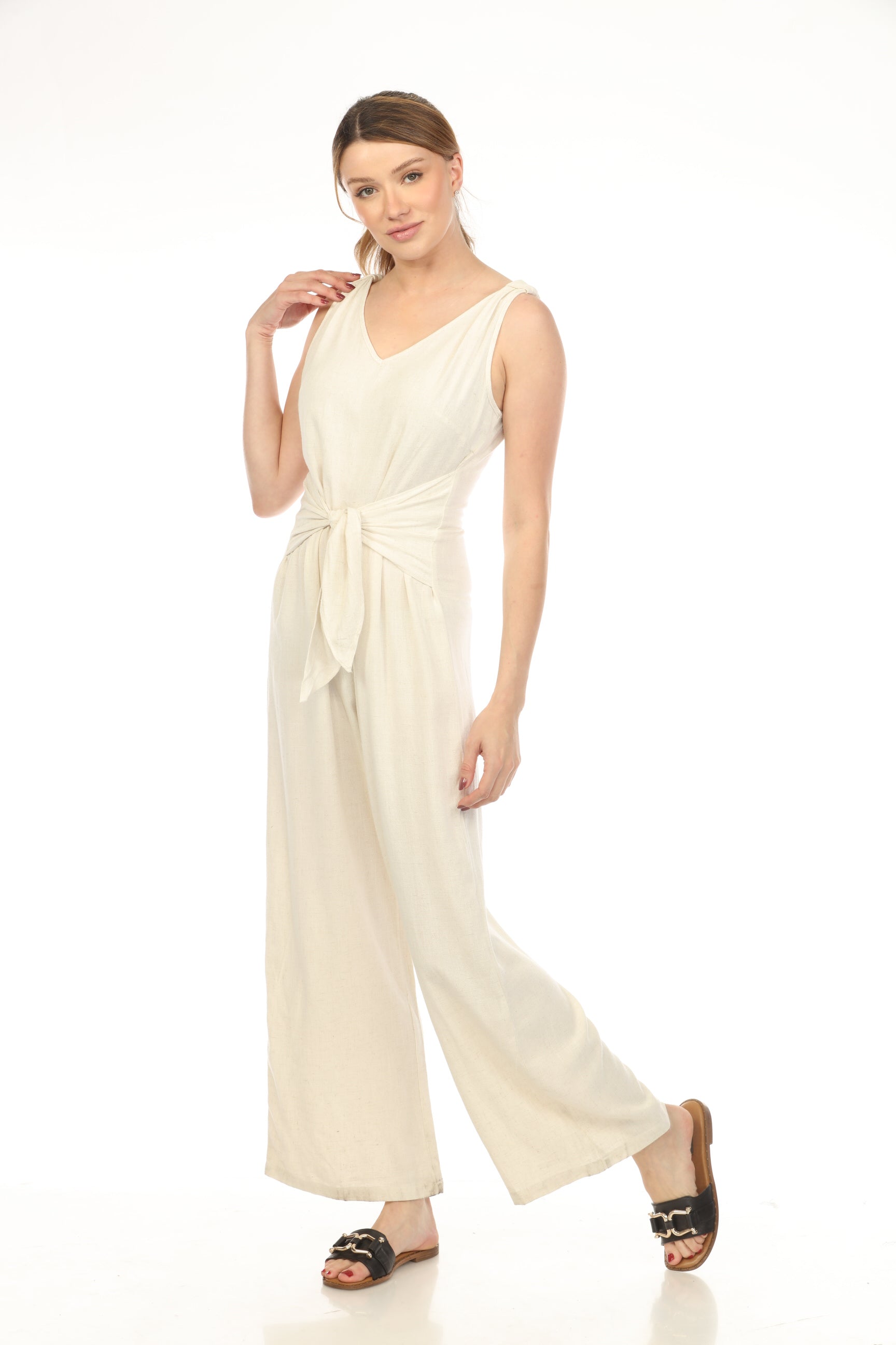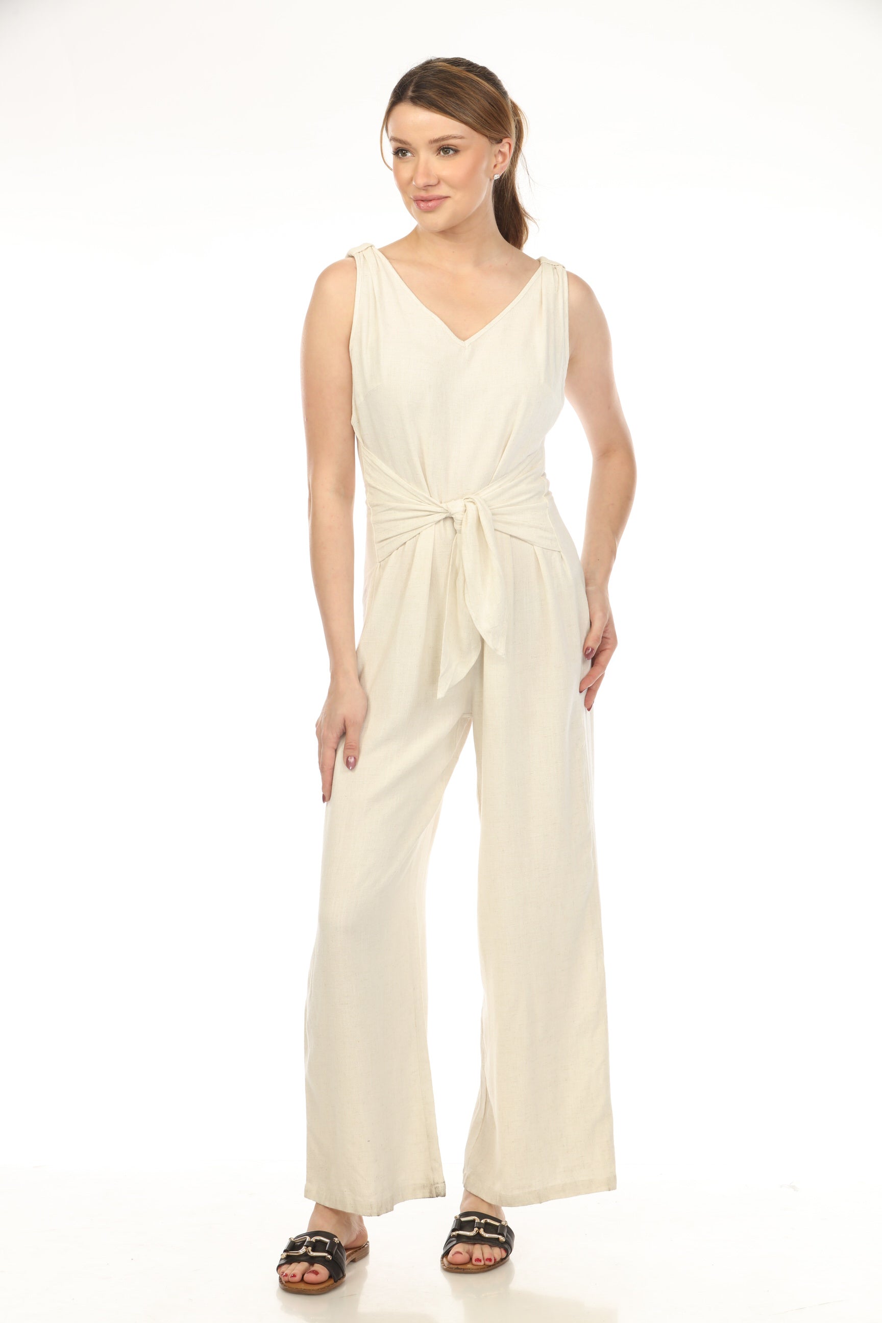 Ivory Tie Front Zipper Back Jump Suit