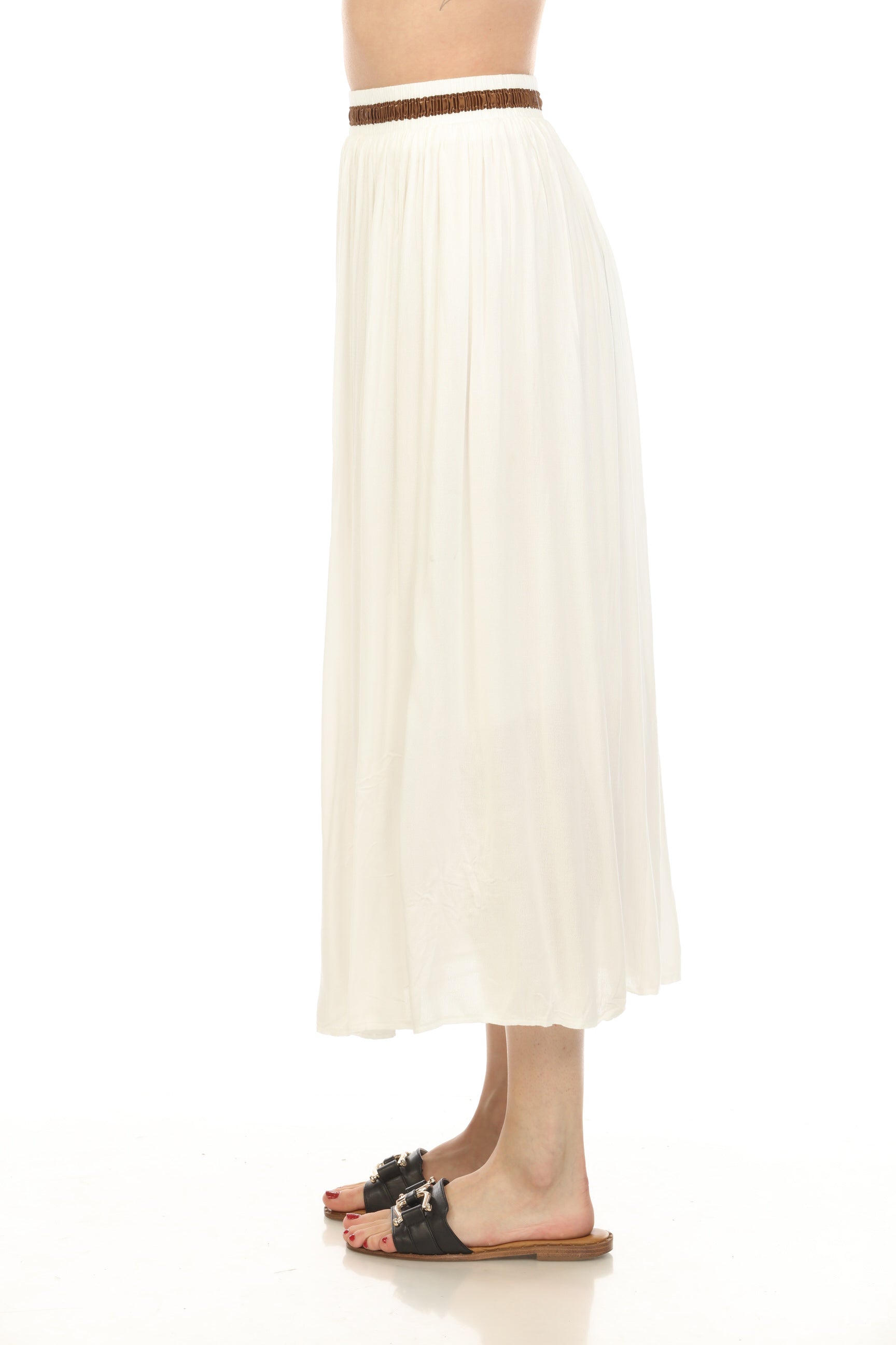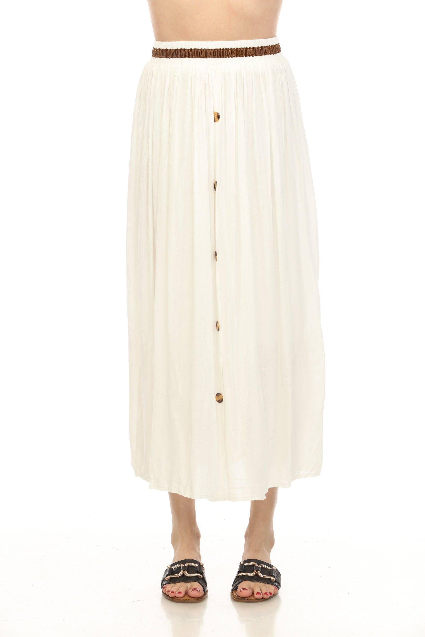 White Button Detailed Elastic Waist Skirt